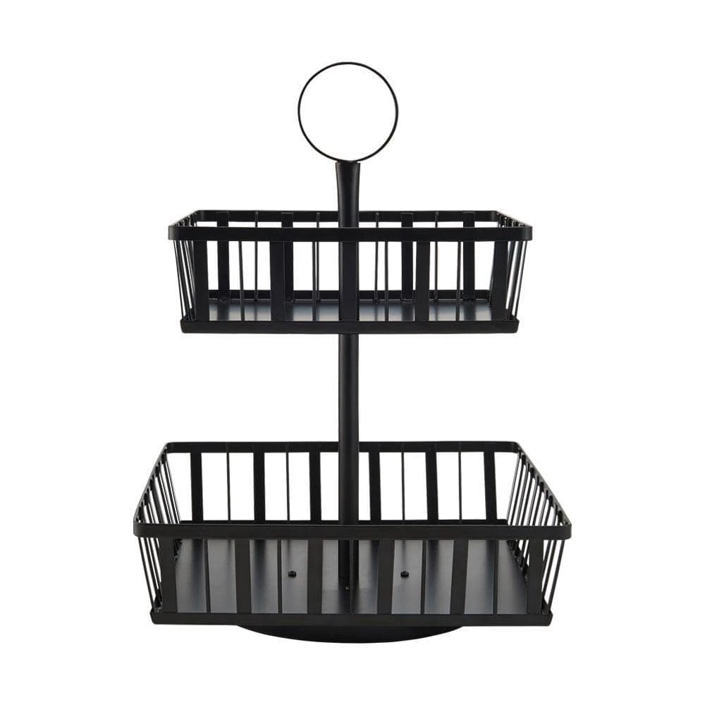 This Rotating 2-Tier Stripe Basket from Gourmet Basics by Mikasa is a storage and display unit all in one. The stripe design makes this a decorative addition to any room–whether you use it in your kitchen to store fruits and other produce or in your bathroom to hold beauty products. The rotation feature offers easier accessibility of items stored, and two tiers means double the storage capacity. This durable piece is handcrafted from high-grade carbon steel for supreme resilience and rust-resistance. Wipe clean with a soft, damp cloth.