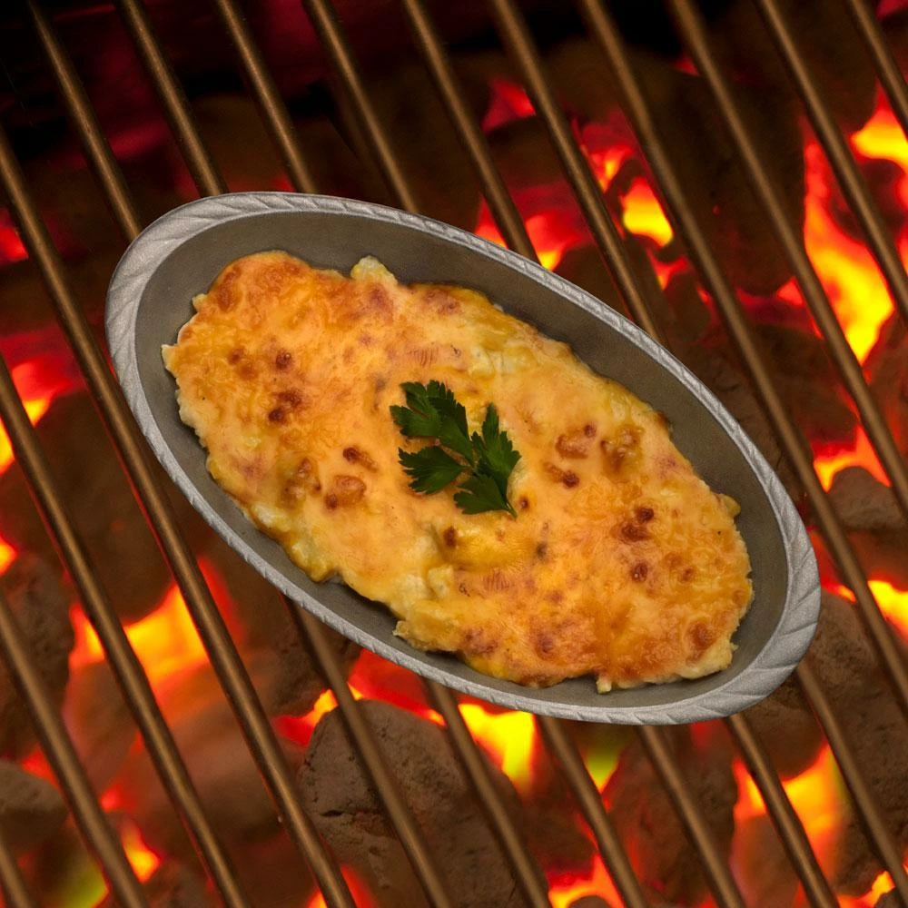 Formal to casual, stylish to rustic, each piece we craft is designed to capture the spirit of your life. Able to withstand temperatures up to 1000 degrees F, Wilton Armetale® Serveware is ideal for your cooking needs. Food stays hot longer and perfect for oven, stove or grill. Designed and crafted by hand, these beautiful products were made to last a lifetime. The Medium Oval Au Gratin is designed specifically for the grill but can also be used on the stovetop or in the oven. Grill anything at your next family cookout or Sunday morning grilled breakfast. Hand wash.