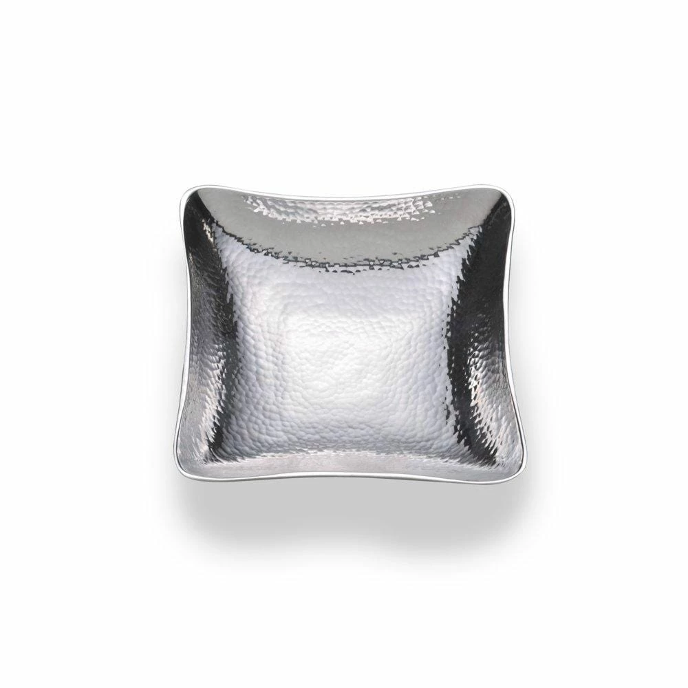 Perfect for serving your guests everything from mashed potatoes to pasta. This bowl is durable and has a rustic hammered finish. It is crafted of food-safe alternative metal alloy. This medium bowl will not scratch or dent under normal use. Oven safe for warming food and freezer safe. Hand wash. Hammersmith square bowl measures 8-1/4 inch square x 2-1/4 inch high.