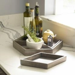 From the Gourmet Basics by Mikasa Collection, this Lattice Farm Condiment Caddy features a wire-framed wall that prevents items from falling off, while the built-in handle allows for easy transport. The black wire details and natural wood platform will complement any decor.