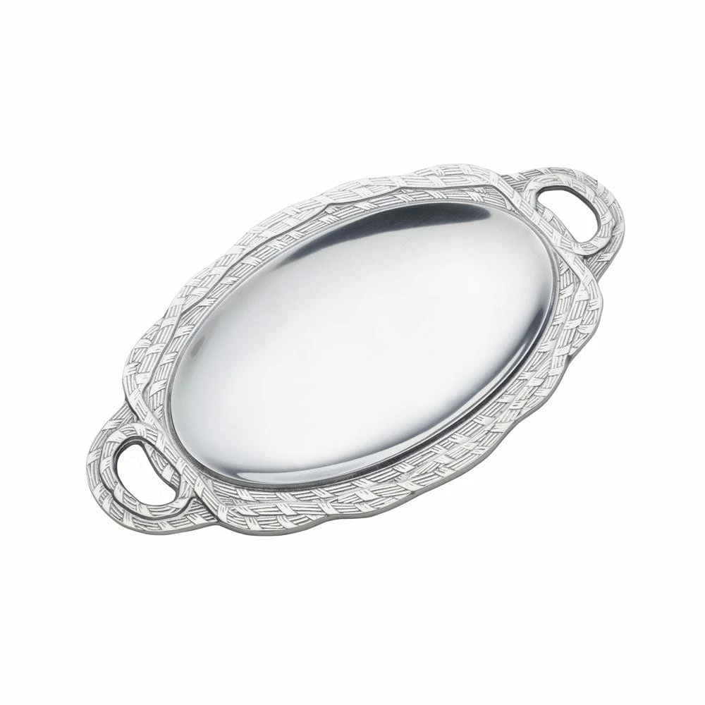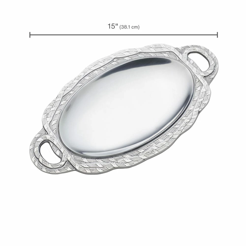From our family of brands, this Wilton Armetale® Sweetgrass Small Oval Tray is inspired by the look of wicker or rattan, and will add a tropical feel on your tabletop. Wilton Armetale® Serveware is ideal for your cooking needs, food stays hot longer and perfect for oven, stove or grill. Designed and crafted by hand, these beautiful products were made to last a lifetime.