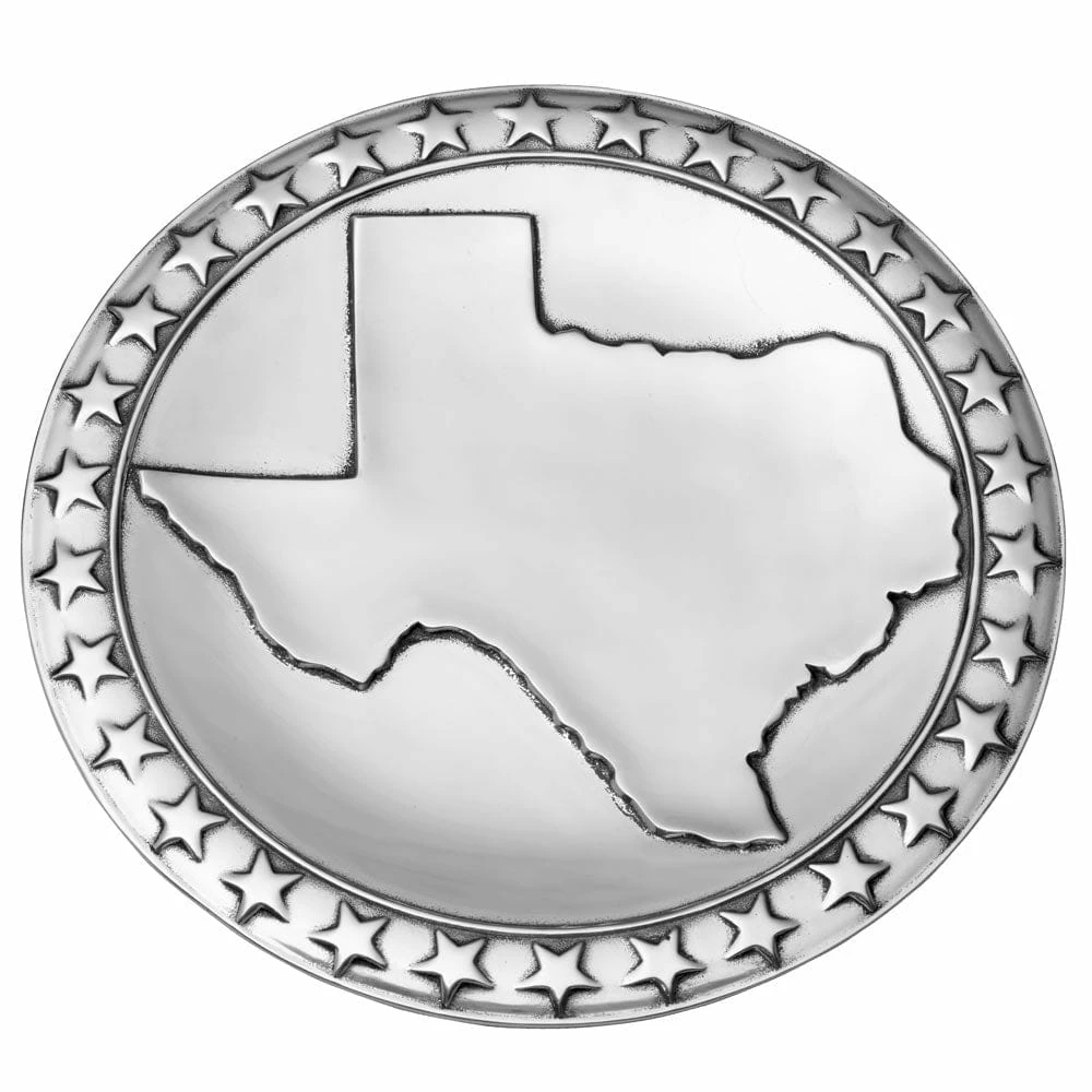 From our family of brands, this Wilton Armetale® Texas Large Round Platter with Star Border features the outline of the state of Texas in the center with stars running around the border, and is the perfect way to show your pride for the state of Texas. Wilton Armetale® Serveware is ideal for your cooking needs, food stays hot longer and perfect for oven, stove or grill. Designed and crafted by hand, these beautiful products were made to last a lifetime.