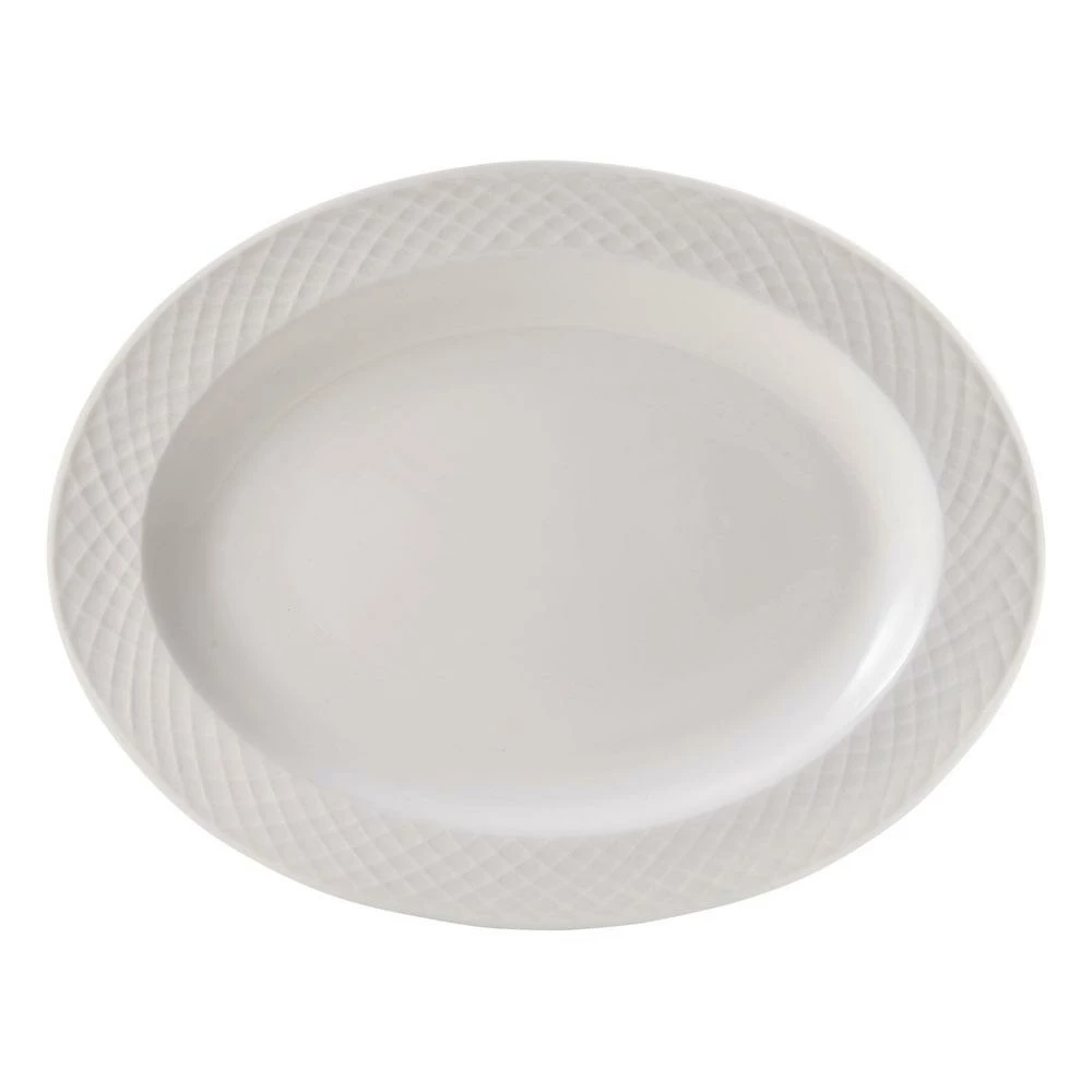 This Mikasa Trellis White Oval Platter features a contemporary, criss-cross line design, creating eye-catching depth and movement on your tabletop. This casual and stylish dish is perfect for everyday use.