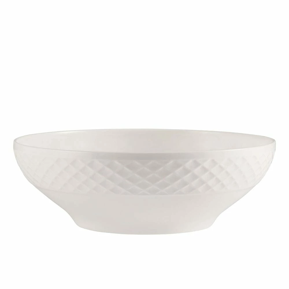 This Trellis White Vegetable Serve Bowl features a contemporary, criss-cross line design, creating eye-catching depth and movement on your tabletop. This casual and stylish dish is perfect for everyday use.